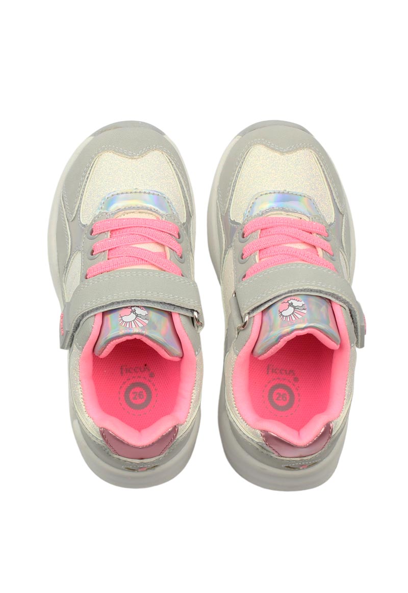 Zapatilla Velcro Glitter W23 Kids Niña Gris 2 a 6 años